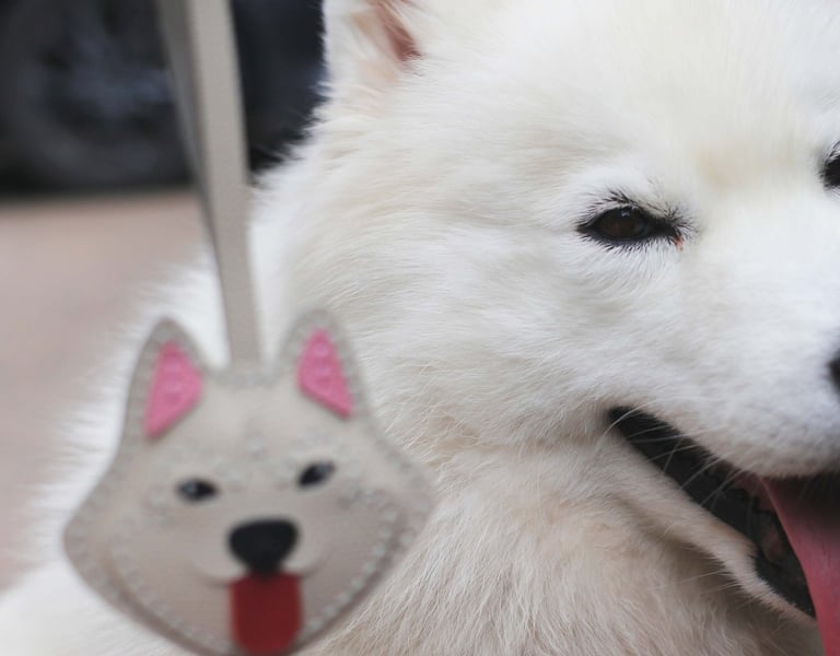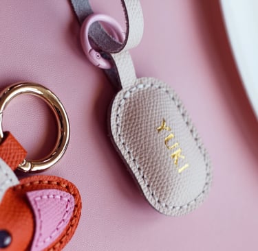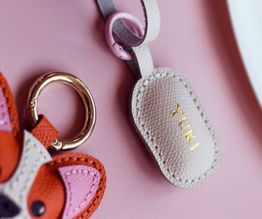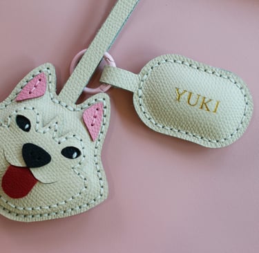 We design bag charms of your beloved pets. Just send us a photo of your pet as a reference. We also offer customizable name tags!
